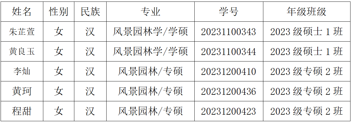 风景园林学院2024-2025年度硕士研究生国家奖学金学院初评名单