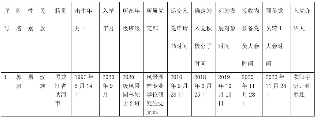 风景园林专业学位研究生党支部2020年下半年预备党员转正公示