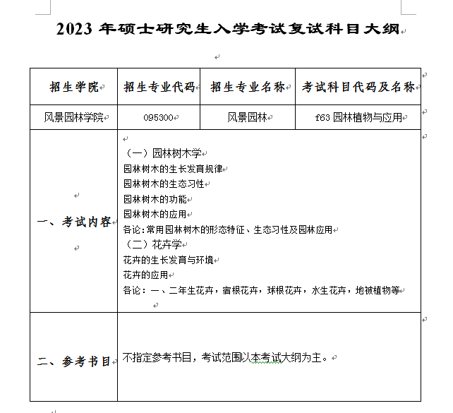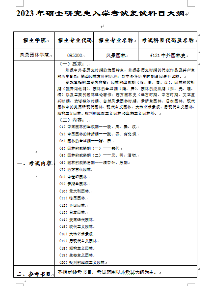 风景园林学院2023年硕士研究生入学考试复试科目考试大纲