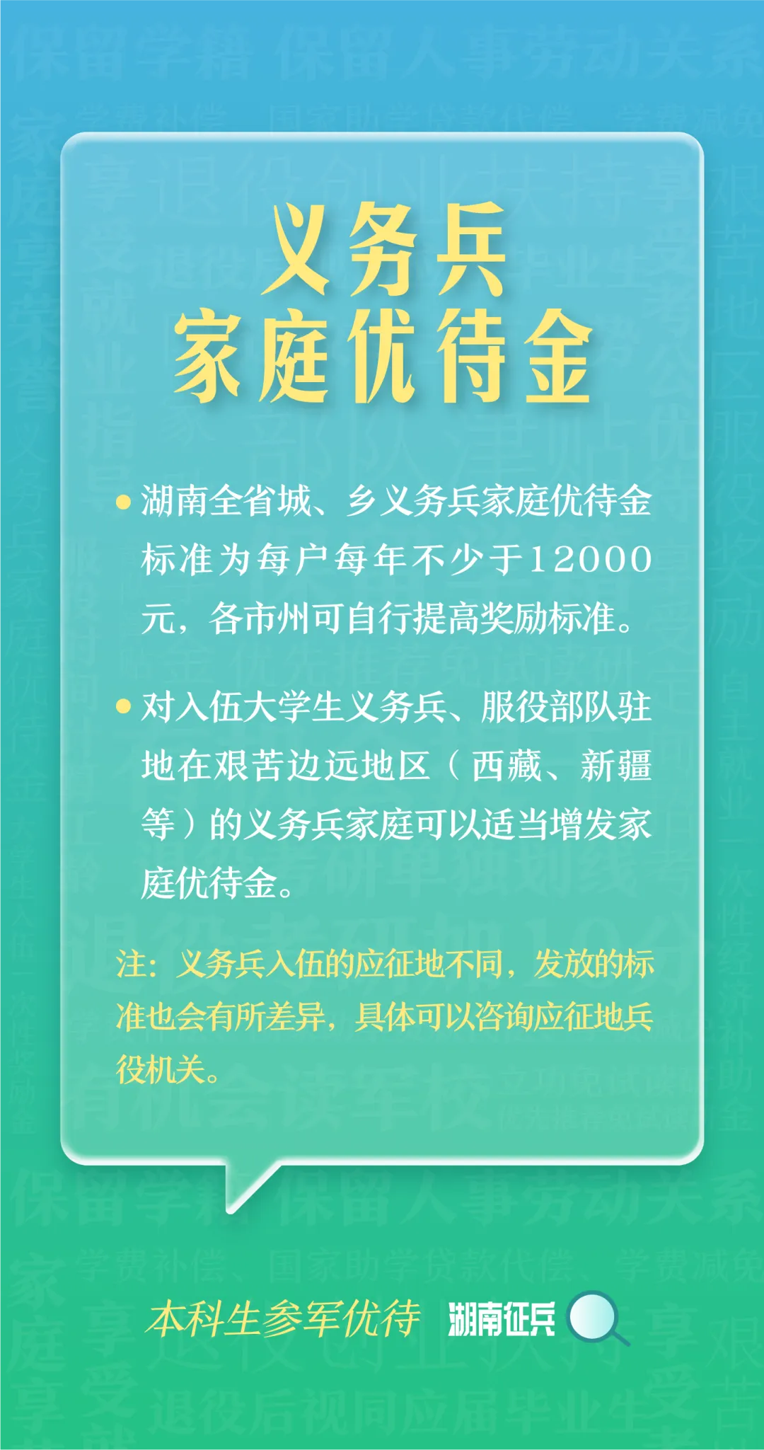 从长沙市应征入伍义务兵家庭优待金标准为每户每年25000元,两年50000元。