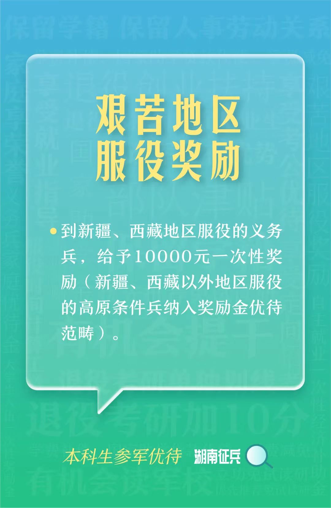 对从长沙市应征入伍到西藏、新疆等艰苦地区服役(含高原条件兵)的义务兵家庭给予“进疆进藏”一次性奖励20000元。