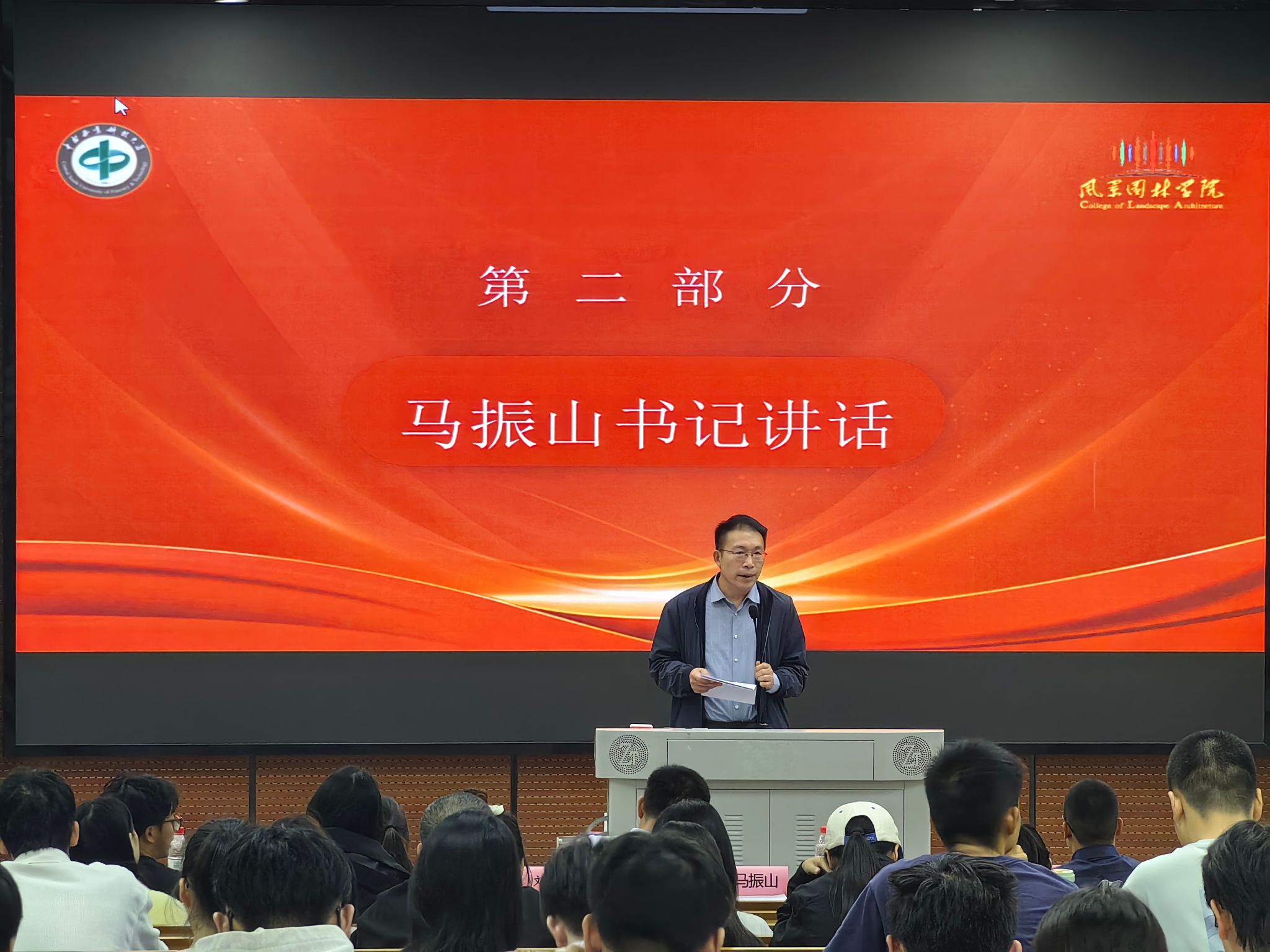 9月24日晚,风景园林学院2026届毕业生就业动员大会在博文楼举行。创新创业学院(就业指导中心)副院长刘洋、风景园林学院党委书记马振山、党委副书记王頔、全体辅导员及2026届全体毕业生参加。会议由王頔副书记主持。