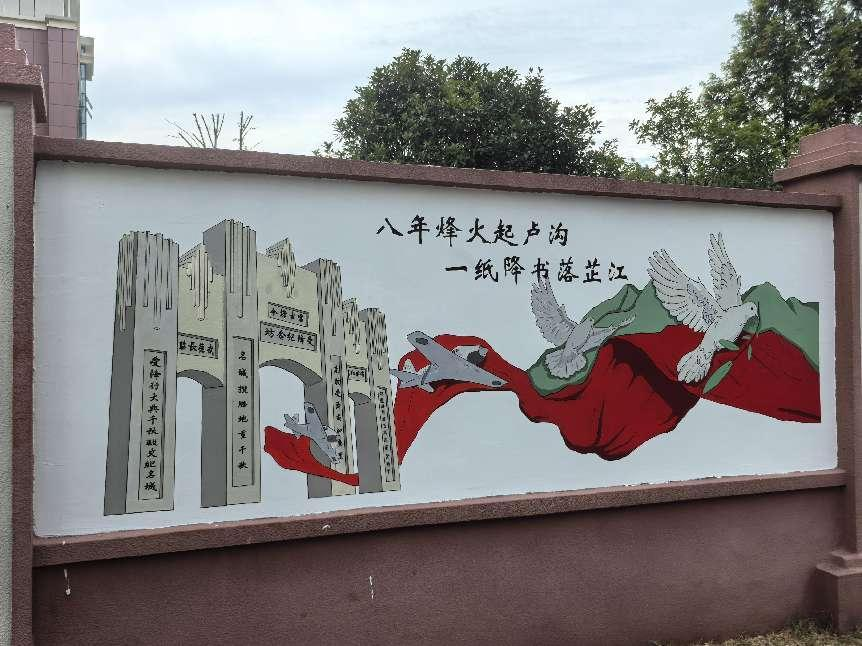 “芷江受降坊这幅图设计有小巧思,战机演变成鸽子,象征战争走向和平。”在墙绘现场,长沙学院实践团指导老师阳谦舟热情带领中南林“湘行寻梦”实践团实地参观,向学子们认真讲解了“矮寨大桥”“芷江受降坊”等一幅幅墙绘作品的起源与灵感,剖析了其背后蕴含的深刻内涵。长沙学院的师生通过二十幅墙绘展现了意蕴丰富的湖湘文化,将一个个诞生于湖湘大地上的历史人物和历史事件构成了独属于湖湘文化的精神谱系,让中南林学子们深切认识到习近平总书记在湖南考察时提出的“悠久的历史文化、厚重的革命文化、活跃的现代文化,是湖南增强文化软实力的丰富资源和深厚基础。”随后,实践团学子积极投入到墙绘制作,在互帮互助的氛围中体验墙绘的魅力并感受湖湘文化的博大精深。