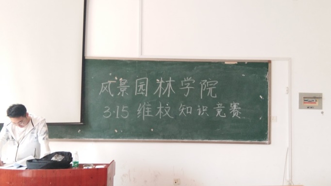 2018年3月15日中午12点15分,由风景园林学院生活实践部举办的风景园林学院3.15维权知识竞赛于第十教学楼310教室进行。学生会各部门干事参与此次活动。