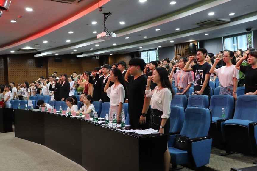 大会伊始,全体成员齐唱团歌,我院团委书记阳俊坤老师带领大家重温入团誓词。随后,熊小卫书记上台发言,对过去一年团委学生会的工作进行总结。她在肯定了第十八届团委学生会工作的同时,也向新一届的团委学生会成员的工作提出要求、做出展望。她希望各学生干部无论是否继续留任,都应当在班级里继续做好表率,协助学生会成员,与同学进行学习与生活上的沟通,起到老师与学生之间的桥梁作用。