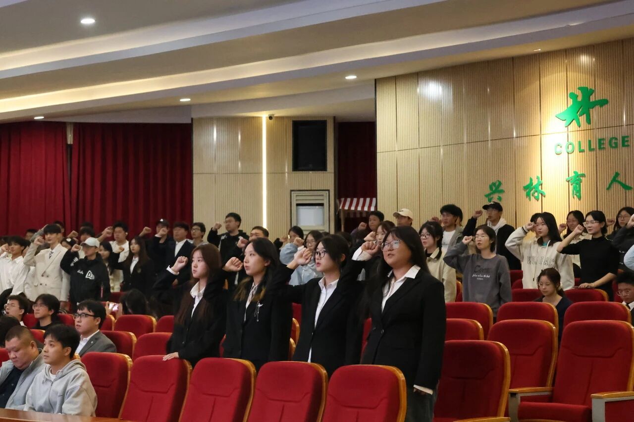执行主席王曙明带领第二十六届团委学生会干部进行就职宣誓。学生会干部们高举右手,庄严宣誓,誓言铿锵有力,彰显出他们的使命担当。