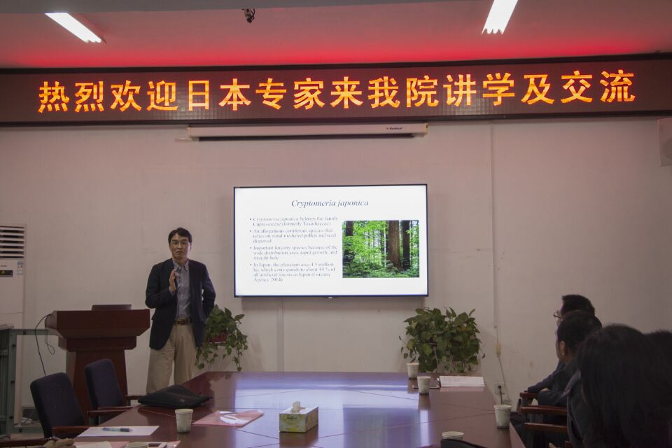 报告会上,津村义彦教授介绍了近年来日本柳杉的研究进展,并展示了课题组所做的工作。上野真义研究员介绍了研究日本柳杉所使用的方法及对比。与会学者围绕柳杉的基因、起源和创新育种进行了系统深入的交流。双方根据多年的课题研究经验,详细探讨了两国柳杉的研究现状和研究方向,分析了柳杉研究中的难点及今后项目合作的措施。会后双方就报告内容及相关问题进行了广泛深入交流。