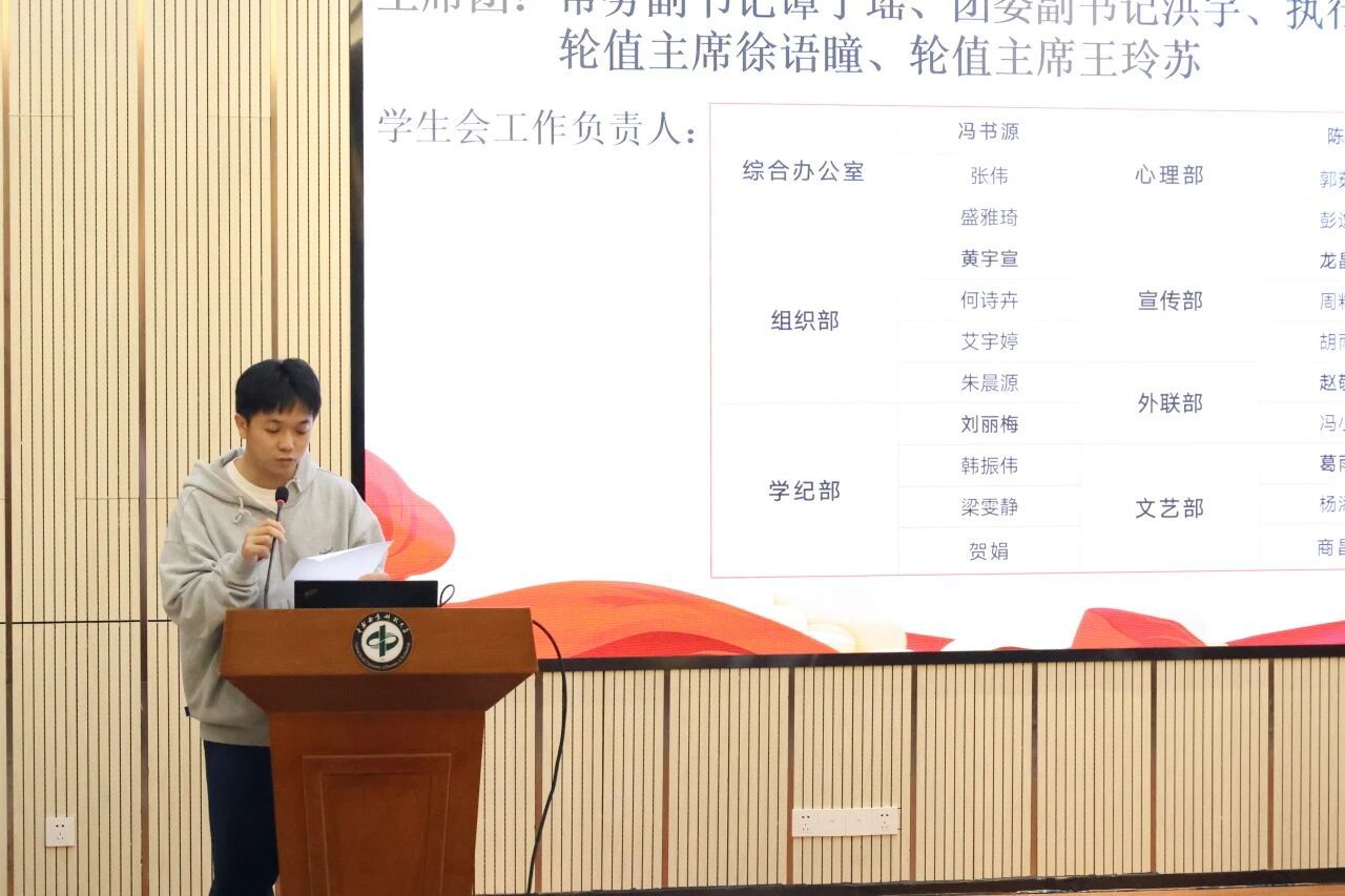 风景园林学院团委书记高韬钧老师宣读新一届团委学生会拟聘名单。