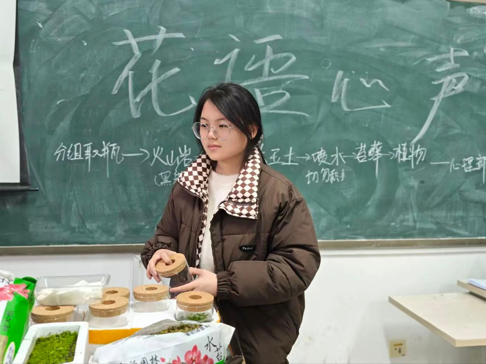 主持人朱彤先介绍了花语心声活动生态瓶的制作流程,为同学们带来了一场温暖而深刻的心灵疗愈之旅。