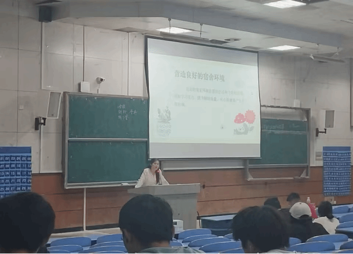 随后,谢肖昀辅导员的讲话明确了心理健康、心理危机、寝室危机的定义,强调寝室环境的重要性并说明了营造寝室良好环境的方法。然后结合亲身经历的学生例子讲解当寝室危机出现时的应对方法。同时给大家介绍寝室危机预防措施,并呼吁寝室长应认识到心理危机的普遍性,不断提高自己的危机预防意识和处理能力,为创造一个和谐的寝室环境贡献力量。