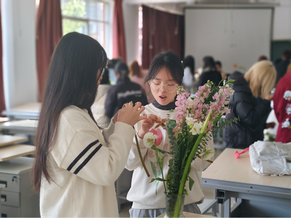 为了锻炼风景园林学院同学们的审美意识、放松其身心、构建一个和谐愉快的生活氛围,3月20日中午,风景园林学院在至美楼举办了“花之语”主题插花活动。