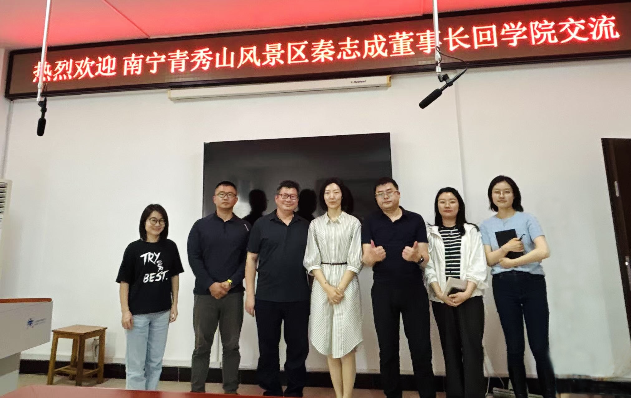 会上,张旻桓欢迎秦志成校友回到母校交流,介绍了学院在学科建设、人才培养、科研创新等方面取得的成绩,进一步助力南宁青秀山风景区与学校融通人才培养模式走深走实,推动校企深度合作以及对学院高质量发展的长期支持表示衷心的感谢。