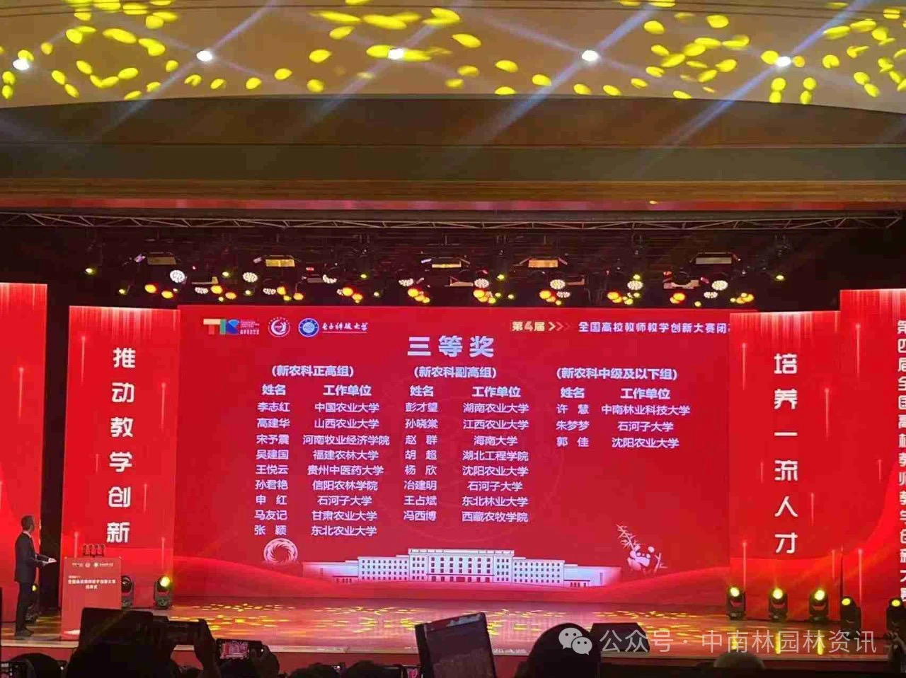 2024年7月27-31日,由国家教育部高等教育司指导,中国高等教育学会主办的第四届全国高校教师教学创新大赛全国现场赛在电子科技大学顺利举行,我院许慧团队(成员颜玉娟、张旻桓、黄琛斐)荣获新农科中级及以下组三等奖。