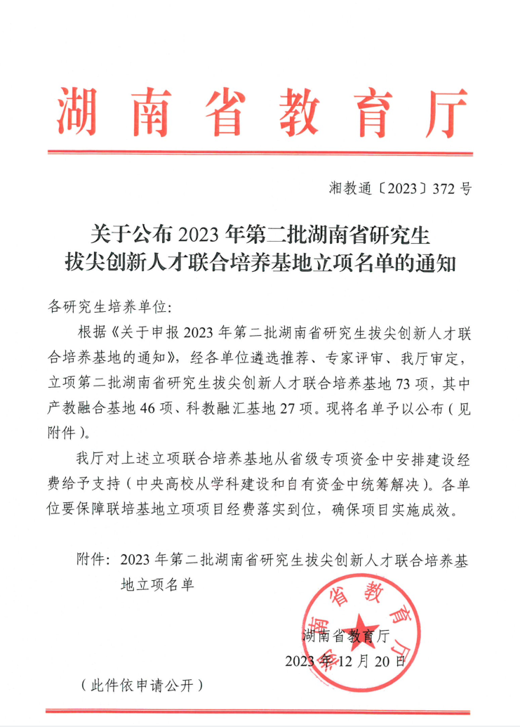 我院成功获批湖南省研究生拔尖创新人才联合培养基地
