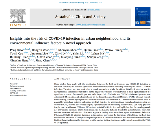 风景园林学院沈守云、廖秋林团队在人居环境健康设计研究取得重要突破,论文Insights into the Risk of COVID-19 Infection in Urban Neighborhood and its Environmental Influence Factors:A Novel Approach在SCI的TOP期刊《Sustainable Cities and Society》上发表(中国科学院一区,TOP5,IF=11.7)。