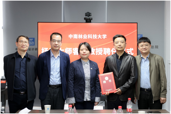 在中建湖湘设计院,中建五局总建筑师兼设计研究总院院长杨瑛等对仇怡副校长一行表示欢迎,介绍了中建湖湘设计院的发展情况,并对学校长期以来给予的支持表示感谢,对聘为学校的客座教授深感荣幸,并表示责任在肩,希望以此次活动为契机,进一步加强校企合作。仇怡副校长就学校发展、人才培养和科学研究等方面进行了介绍,希望双方能建立更高水平的合作关系,“订单式”培养优质人才,并就科学研究、项目合作、拓岗就业等方面进行了交流。仇怡副校长代表学校给杨瑛大师颁发客座教授聘书。风景园林学院文亚峰院长与中建湖湘设计院贺丽菱院长签署了联合培养基地协议。