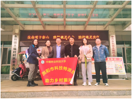 2021年11月2日,浏阳市彭邵锋副市长、科技局廖文晖局长等到中南林业科技大学浏阳市科技特派员驻点——永和镇永福村指导工作,我院詹文博士就驻点相关工作情况进行了汇报和交流。