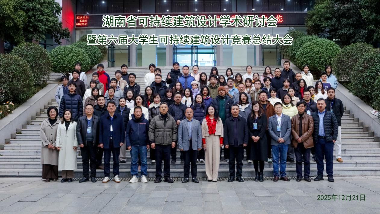 2025年12月21日,由湖南省教育厅主办、中南林业科技大学承办的“湖南省可持续建筑设计学术研讨会暨第六届大学生可持续建筑设计竞赛总结大会”在我校圆满举行。本次会议以“在地生长的积极场所——AI时代建筑设计的在地性表达”为主题,旨在回应生成式设计带来的空间同质化挑战,推动建筑与土地、人文的深层联结,来自省内外18所高校的专家学者、师生代表齐聚一堂,共同探讨可持续建筑设计的前沿趋势与实践路径。