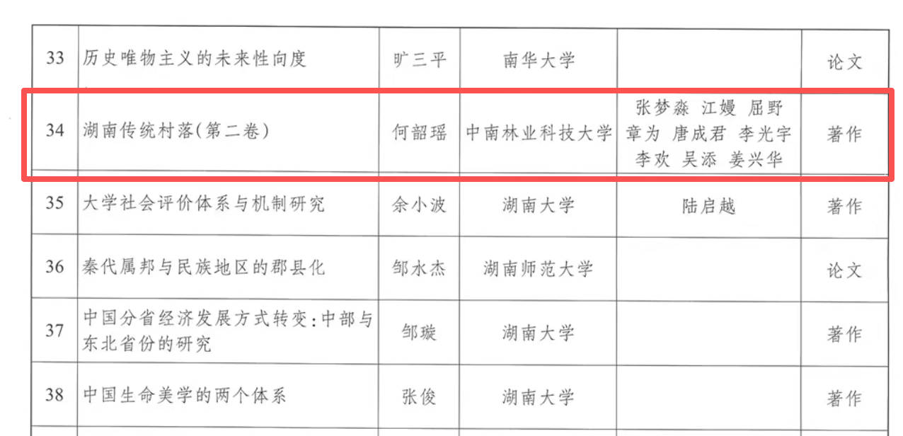 近日,中共湖南省委、湖南省人民政府发布了《关于表彰湖南省第十六届社会科学奖获奖成果和专家的决定》,对获奖成果和专家进行了表彰。院长何韶瑶教授主持的《湖南传统村落(第二卷)》著作荣获第十六届湖南省社会科学优秀成果奖二等奖。