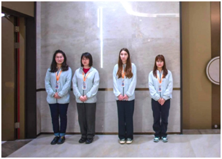 志愿者们在执行专业考察服务工作 部分国际留学生在执行会场志愿者服务工作