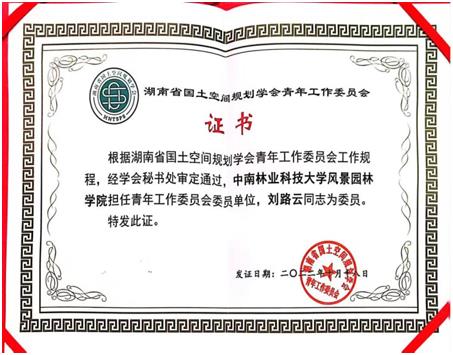 刘路云副教授受邀聘为湖南省国土空间规划学会青年工作委员会委员